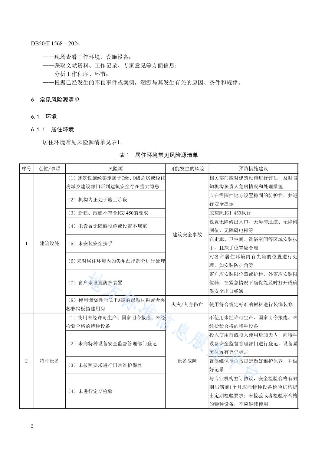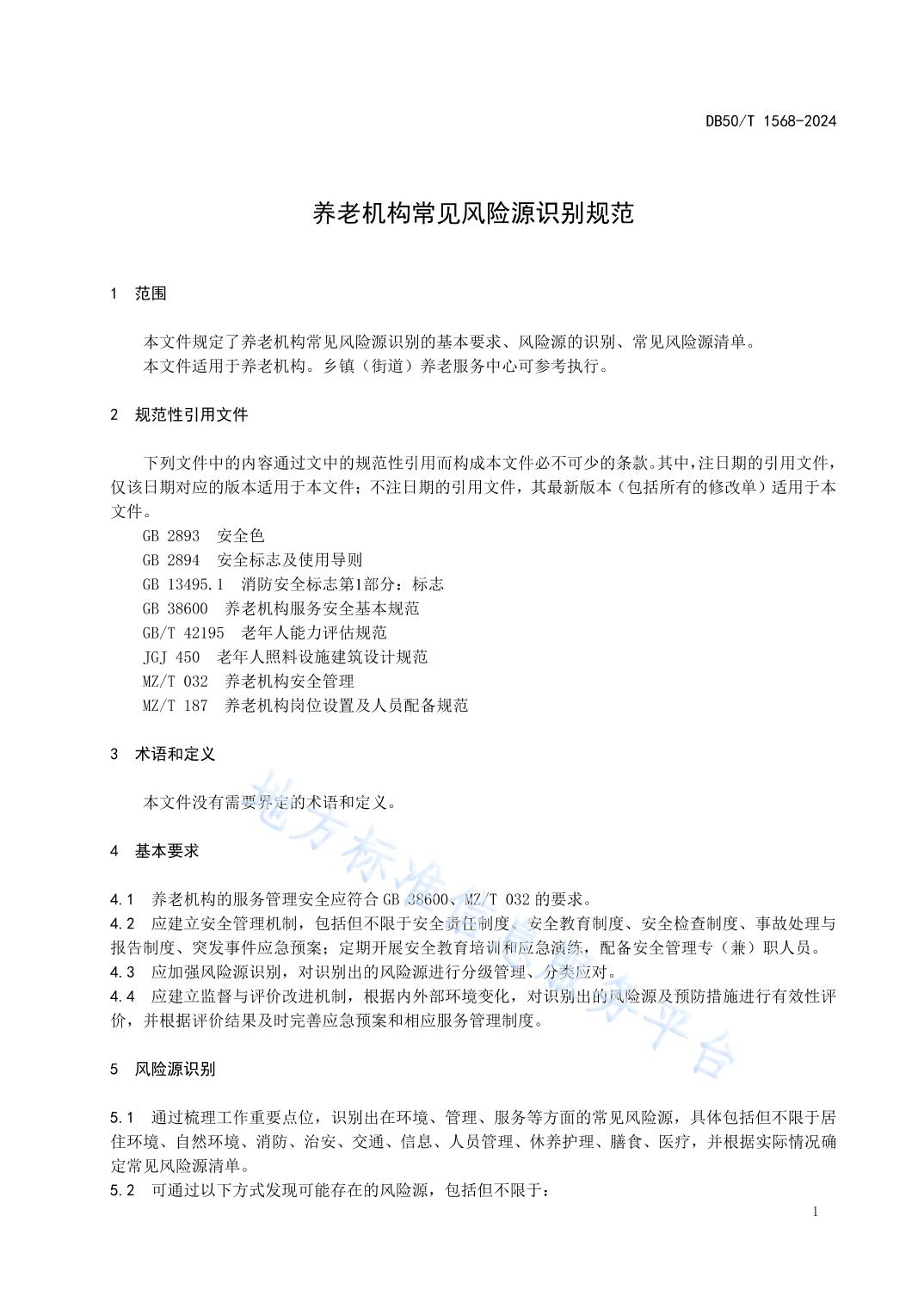 DB50/T 1568-2024 养老机构常见风险源识别规范_51吃瓜网-吃瓜网站