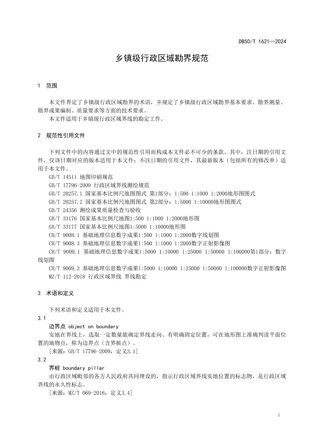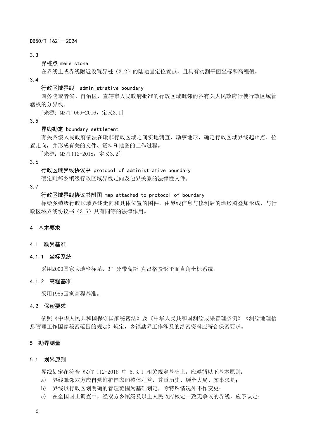 - DB50/T 1621—2024 乡镇级行政区域勘界规范