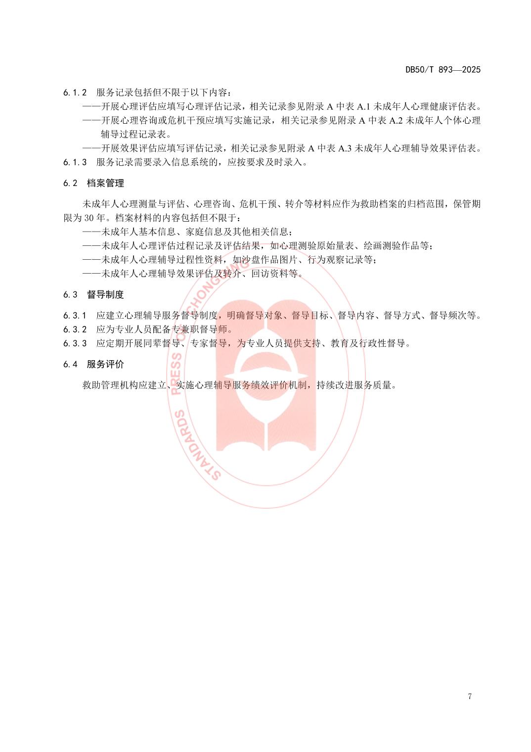 - DB50/T 893—2025 救助管理机构未成年人个体心理辅导服务规范