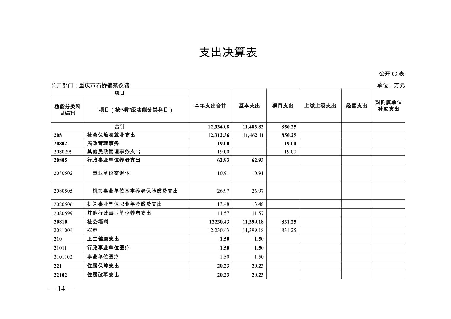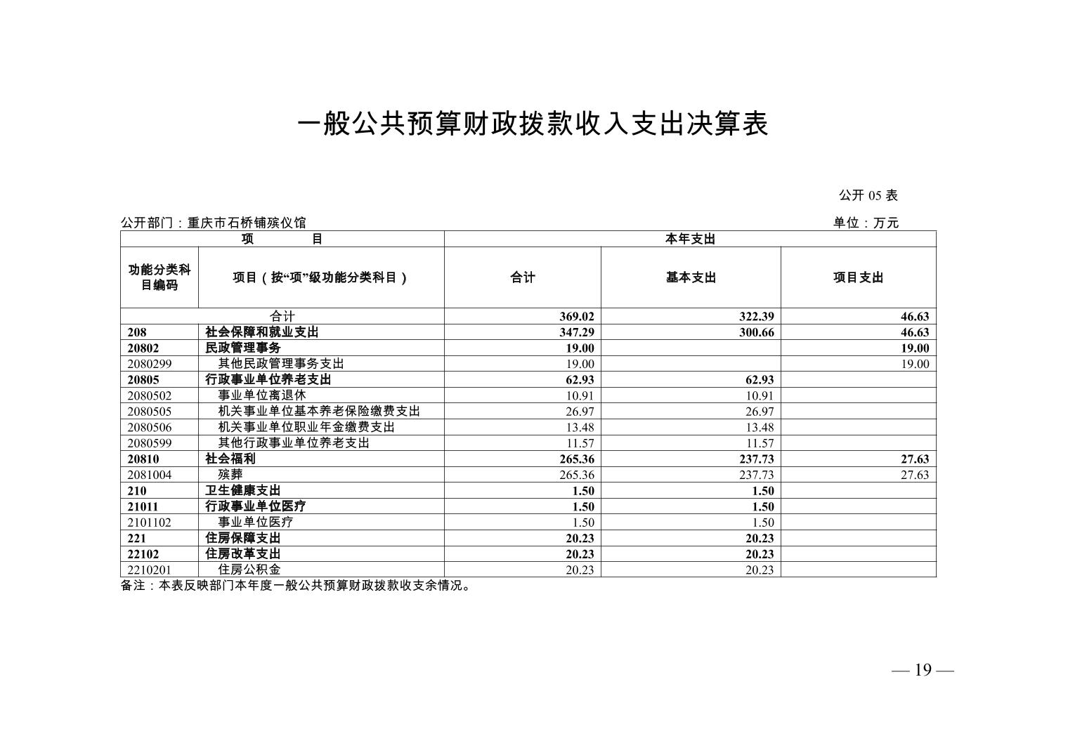 重庆市石桥铺殡仪馆2022年部门决算