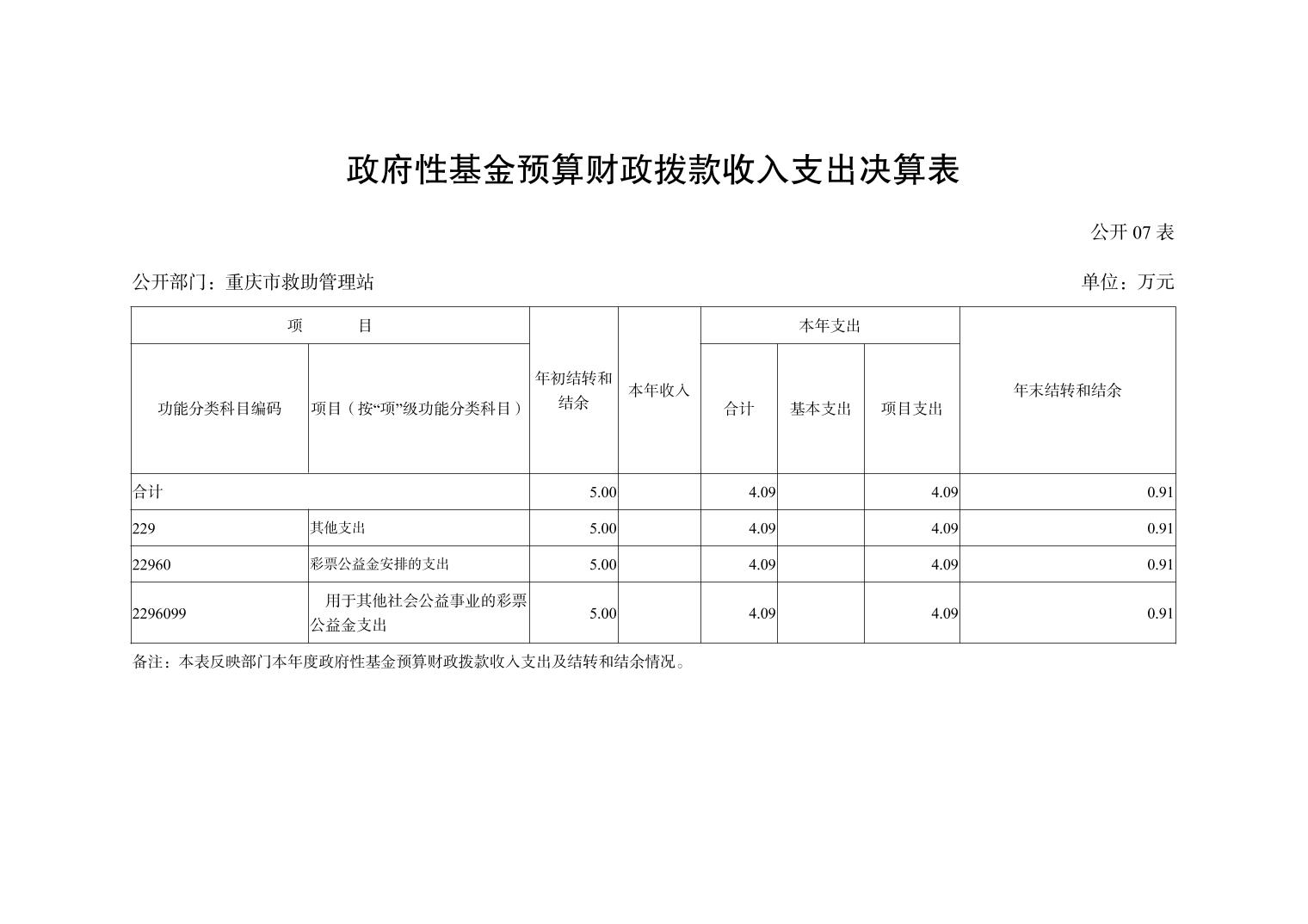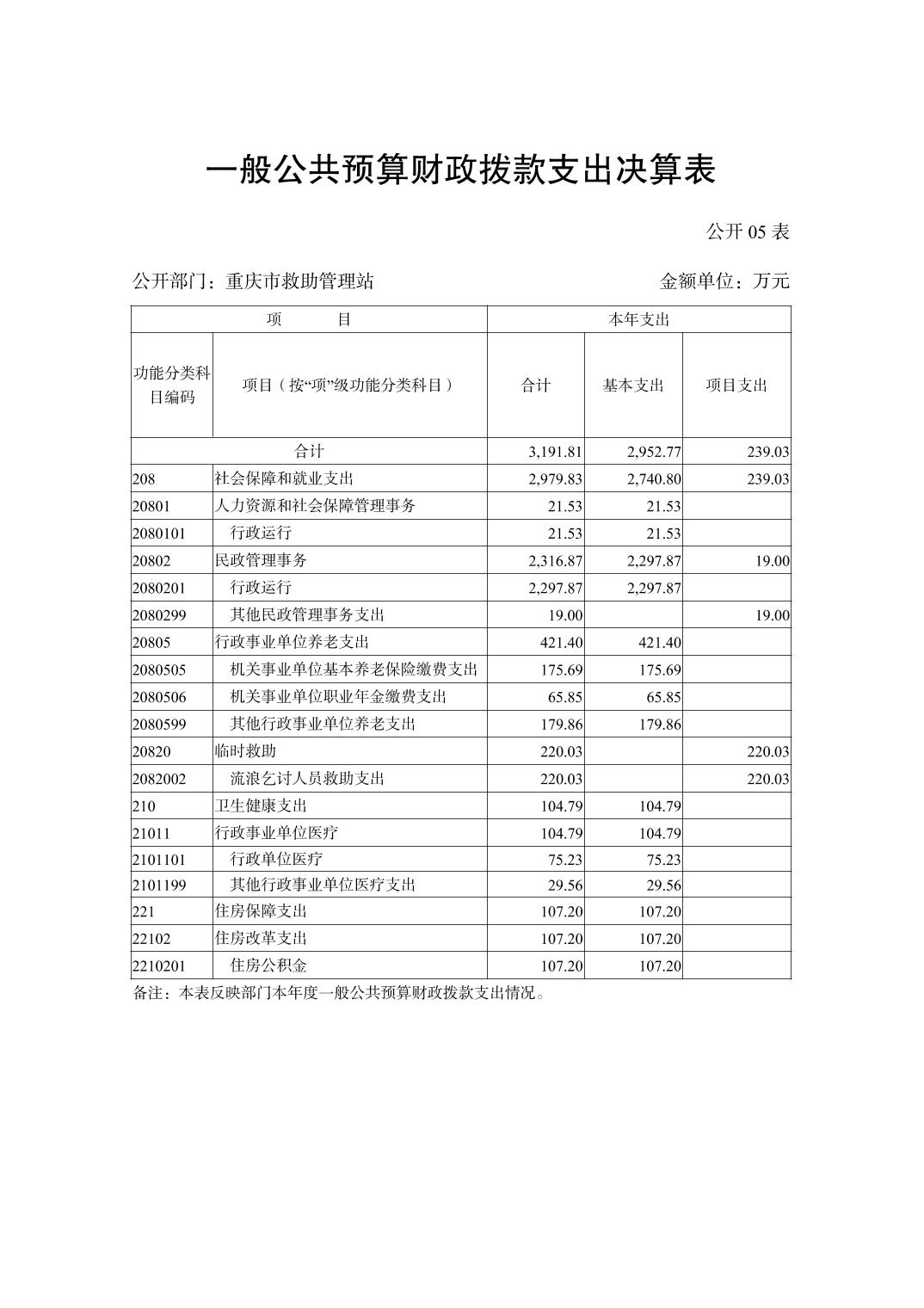 重庆市救助管理站2022年度部门决算