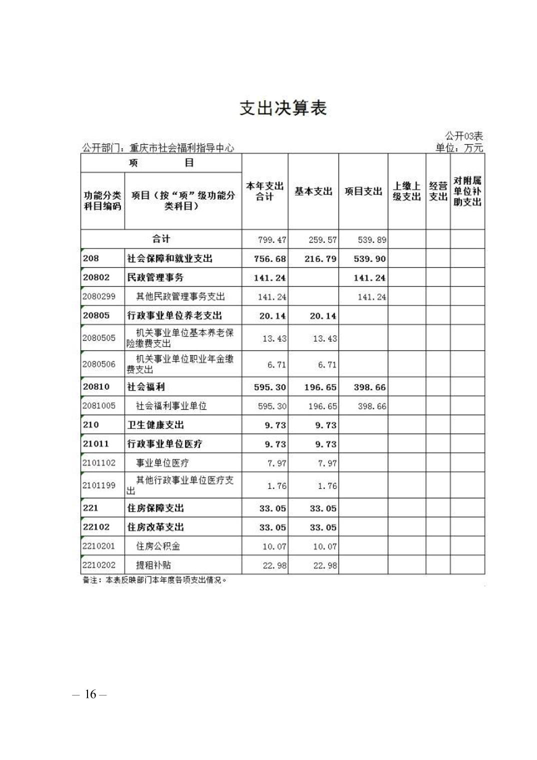 重庆市福利指导中心2022年部门决算