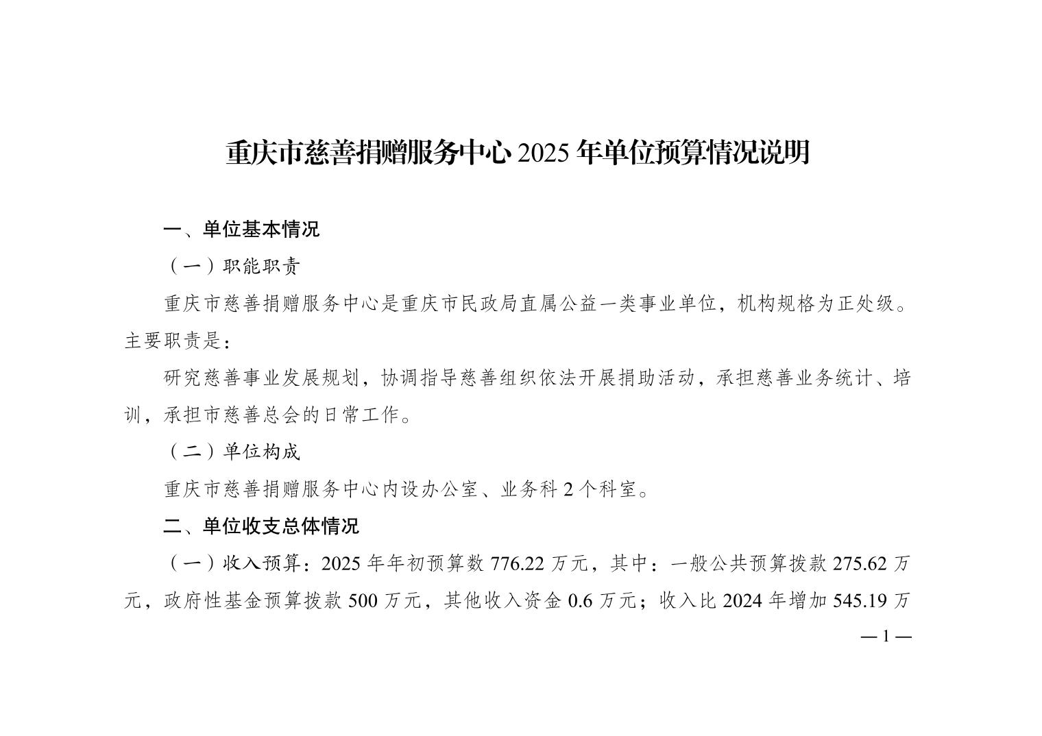重庆市慈善捐赠服务中心2025年单位预算情况说明_51吃瓜网-吃瓜网站